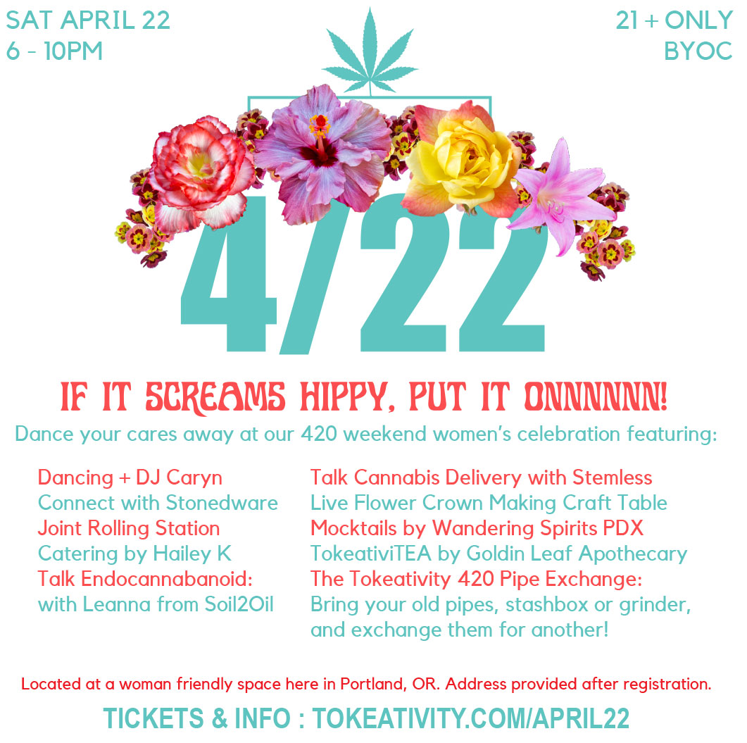 Ladies, it’s time to put on your best dancing shoes and head over to Portland’s Tokeativity Social: Flower Power. The event begins on 4/22, and there will be lots of music, a 420 pipe exchange, and even a live flower crown making craft table. Learn more about it