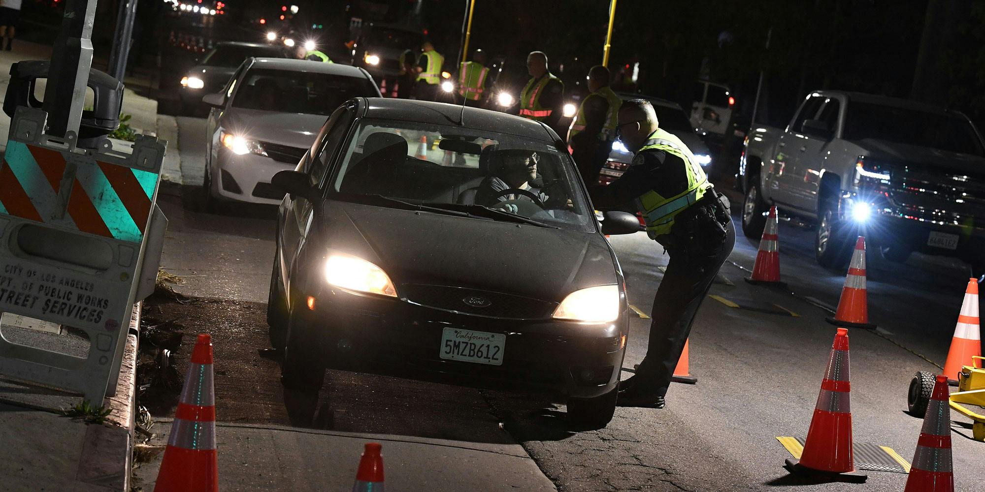 A driver is questioned at a LAPD police DUI checkpoint in Reseda, Los Angeles, California on April 13, 2018. (Photo by Mark Ralston / AFP / Getty Images)