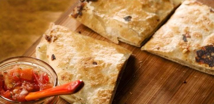 Cook the quesadilla, turning once, until golden brown, 5 to 7 minutes total.